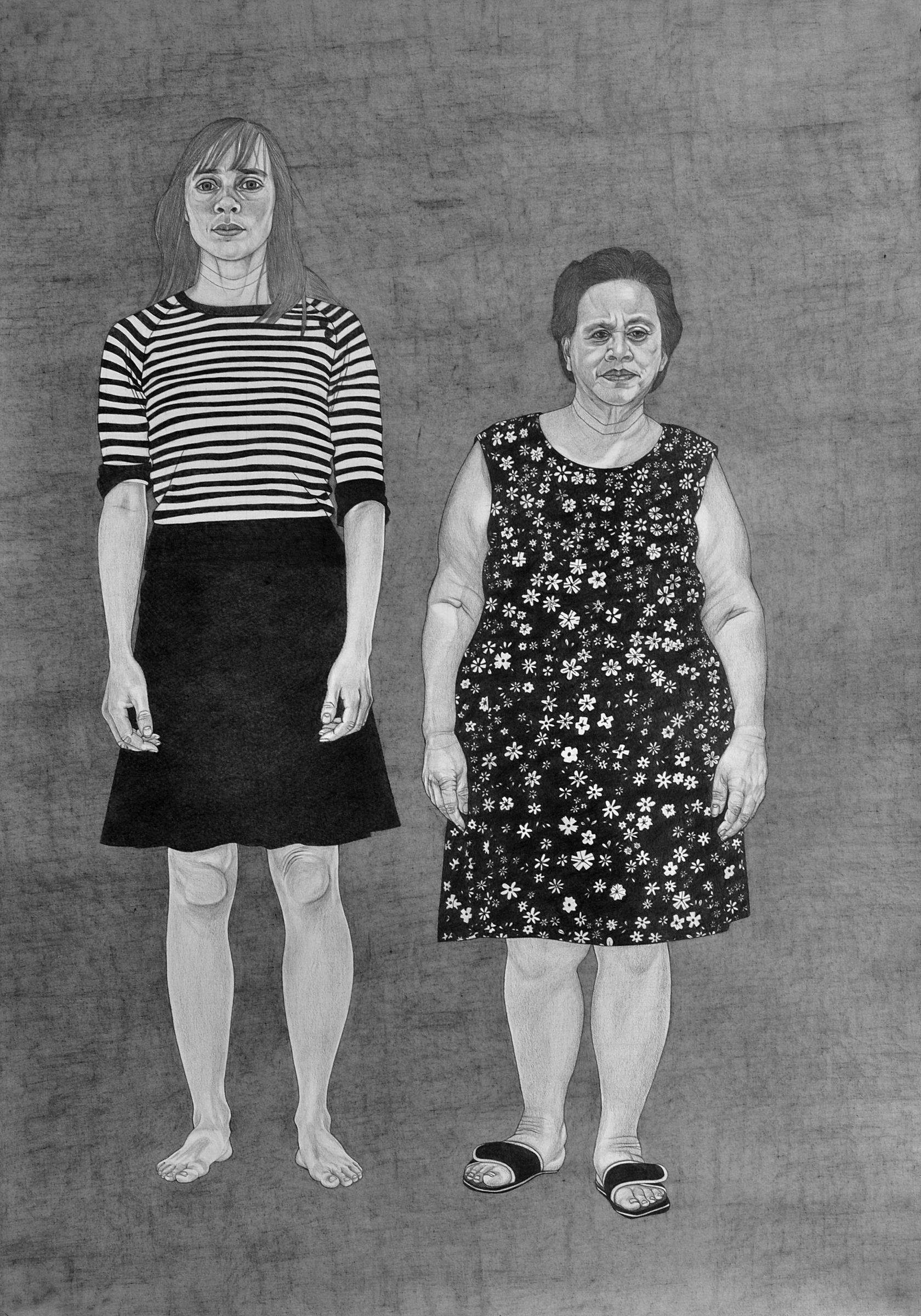 Mijn moeder en ik, 100 x 70 cm, grafietpotlood op papier.